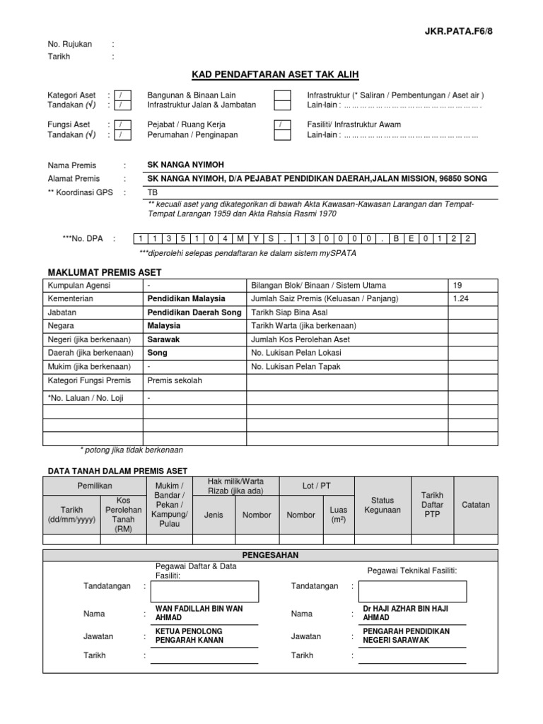 2 Kad Daftar Aset Tak Alih Jkr Pata F68