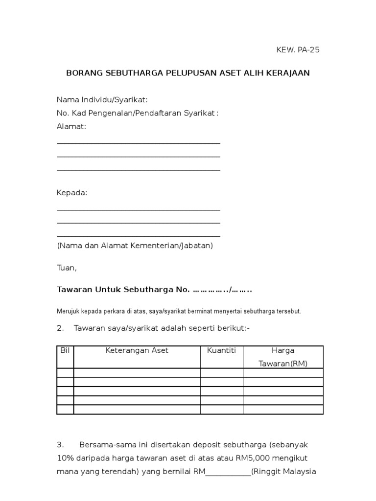 25 Kew Pa 25 Borang Sebutharga Pelupusan Aset Alih