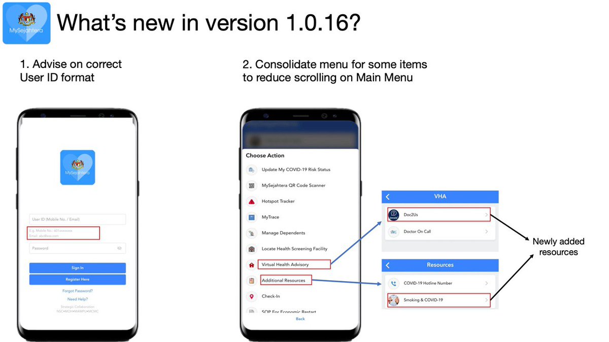 Aplikasi yang dibangunkan akan dipastikan memenuhi objektif dan skop yang ditetapkan. UNITPEMODENANTADBIRANDAN PERANCANGANPENGURUSANMALAYSIAMAMPU JABATANPERDANAMENTERI Aras1-6SetiaPerdana2 KompleksSetiaPerdana PusatPentadbiranKerajaanPersekutuan Tel. Muat turun dan pasang aplikasi MySejahtera daripada Galeri Aplikasi Mudah Alih Kerajaan Malaysia GAMMA Apple AppStore Google Play Store atau Huawei AppGallery.