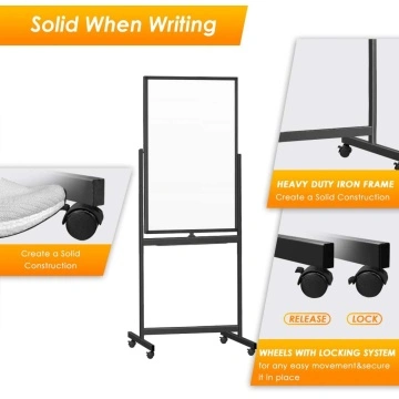 Papan Papan Magnetik Bergerak Papan Putih Bergulir Sisi Dua Besar 48 X 32 Inci Papan Hapus Kering Dengan Dudukan Papan Penanda Berdiri Easel Di Roda Dengan Dulang Untuk Ruang Kelas Pejabat